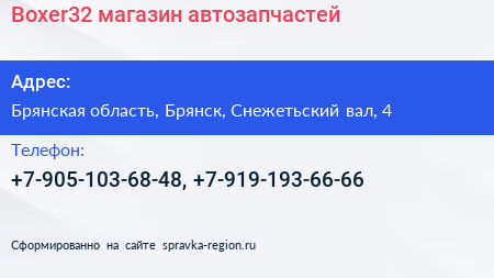 Boxer32, магазин автозапчастей по адресу Брянская область, Брянск, Снежетьский вал, 4 в дальнейшем Организация, размещена в следующих категориях: