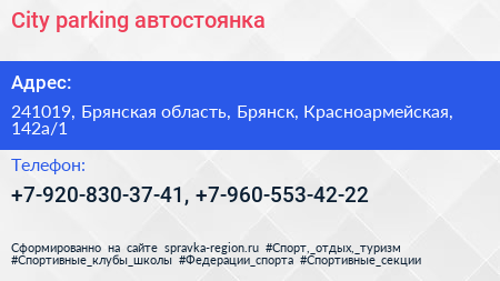 City parking, автостоянка по адресу 241019, Брянская область, Брянск, Красноармейская, 142а/1 в дальнейшем Организация, размещена в следующих категориях: