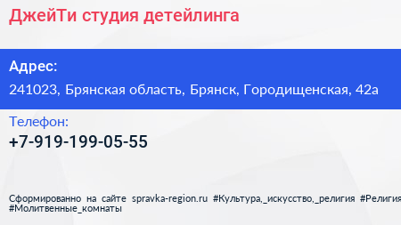 ДжейТи, студия детейлинга по адресу 241023, Брянская область, Брянск, Городищенская, 42а в дальнейшем Организация, размещена в следующих категориях: