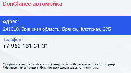 DonGlance, автомойка по адресу 241010, Брянская область, Брянск, Флотская, 29Б в дальнейшем Организация, размещена в следующих категориях: