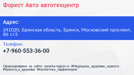 Форест-Авто, автотехцентр по адресу 241020, Брянская область, Брянск, Московский проспект, 86 ст3 в дальнейшем Организация, размещена в следующих категориях: