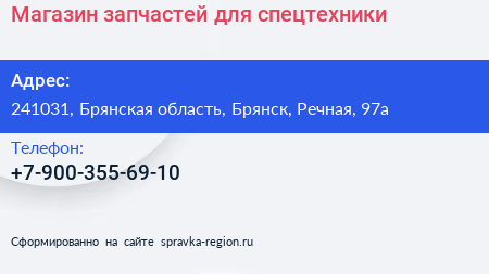 Магазин запчастей для спецтехники по адресу 241031, Брянская область, Брянск, Речная, 97а в дальнейшем Организация, размещена в следующих категориях:
