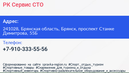 РК-Сервис, СТО по адресу 241028, Брянская область, Брянск, проспект Станке Димитрова, 55Б в дальнейшем Организация, размещена в следующих категориях: