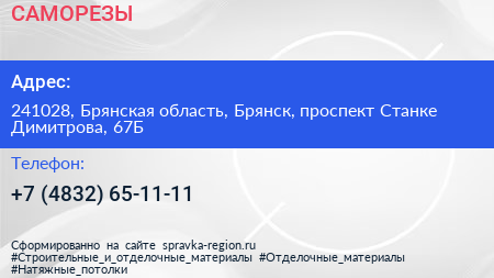 САМОРЕЗЫ по адресу 241028, Брянская область, Брянск, проспект Станке Димитрова, 67Б в дальнейшем Организация, размещена в следующих категориях: