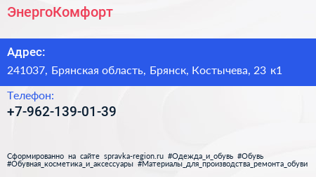 ЭнергоКомфорт по адресу 241037, Брянская область, Брянск, Костычева, 23 к1 в дальнейшем Организация, размещена в следующих категориях: