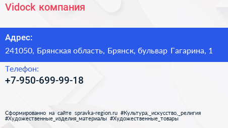 Vidock, компания по адресу 241050, Брянская область, Брянск, бульвар Гагарина, 1 в дальнейшем Организация, размещена в следующих категориях: