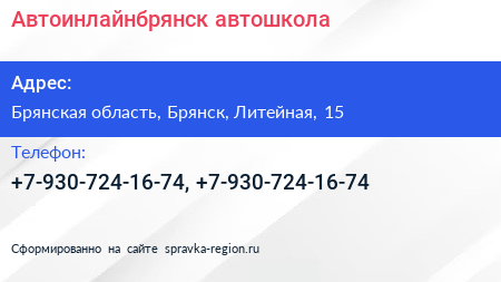 Автоинлайнбрянск, автошкола по адресу Брянская область, Брянск, Литейная, 15 в дальнейшем Организация, размещена в следующих категориях: