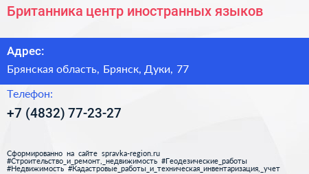Британника, центр иностранных языков по адресу Брянская область, Брянск, Дуки, 77 в дальнейшем Организация, размещена в следующих категориях: