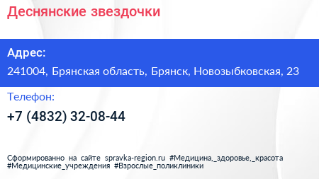 Деснянские звездочки по адресу 241004, Брянская область, Брянск, Новозыбковская, 23 в дальнейшем Организация, размещена в следующих категориях: