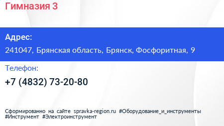 Гимназия №3 по адресу 241047, Брянская область, Брянск, Фосфоритная, 9 в дальнейшем Организация, размещена в следующих категориях: