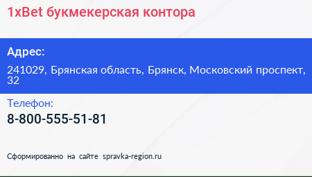 1xBet, букмекерская контора по адресу 241029, Брянская область, Брянск, Московский проспект, 32 в дальнейшем Организация, размещена в следующих категориях: