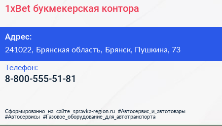 1xBet, букмекерская контора по адресу 241022, Брянская область, Брянск, Пушкина, 73 в дальнейшем Организация, размещена в следующих категориях: