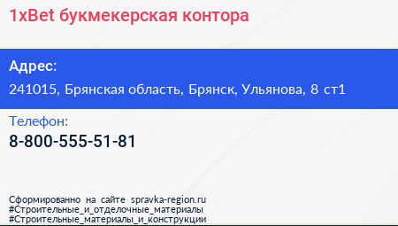 1xBet, букмекерская контора по адресу 241015, Брянская область, Брянск, Ульянова, 8 ст1 в дальнейшем Организация, размещена в следующих категориях: