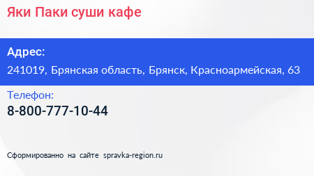 Яки Паки, суши-кафе по адресу 241019, Брянская область, Брянск, Красноармейская, 63 в дальнейшем Организация, размещена в следующих категориях: