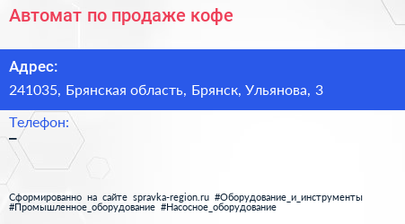 Автомат по продаже кофе по адресу 241035, Брянская область, Брянск, Ульянова, 3 в дальнейшем Организация, размещена в следующих категориях: