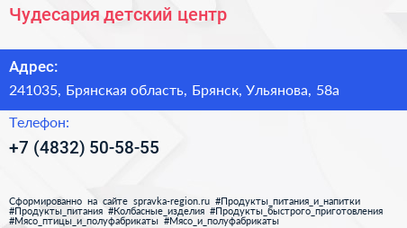 Чудесария, детский центр по адресу 241035, Брянская область, Брянск, Ульянова, 58а в дальнейшем Организация, размещена в следующих категориях: