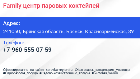 Family, центр паровых коктейлей по адресу 241050, Брянская область, Брянск, Красноармейская, 39 в дальнейшем Организация, размещена в следующих категориях: