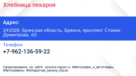 Хлебница, пекарня по адресу 241028, Брянская область, Брянск, проспект Станке Димитрова, 63 в дальнейшем Организация, размещена в следующих категориях: