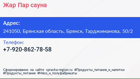 Жар-Пар, сауна по адресу 241050, Брянская область, Брянск, Тарджиманова, 50/2 в дальнейшем Организация, размещена в следующих категориях: