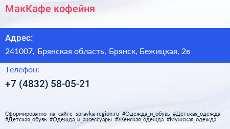 МакКафе, кофейня по адресу 241007, Брянская область, Брянск, Бежицкая, 2в в дальнейшем Организация, размещена в следующих категориях: