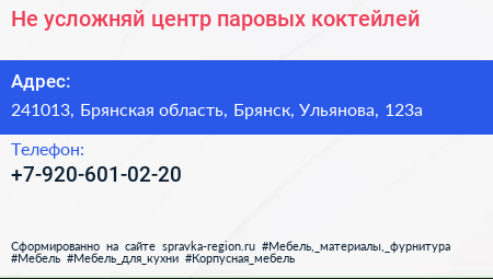 Не усложняй, центр паровых коктейлей по адресу 241013, Брянская область, Брянск, Ульянова, 123а в дальнейшем Организация, размещена в следующих категориях: