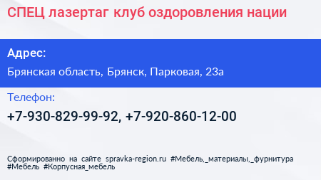 СПЕЦ, лазертаг-клуб оздоровления нации по адресу Брянская область, Брянск, Парковая, 23а в дальнейшем Организация, размещена в следующих категориях: