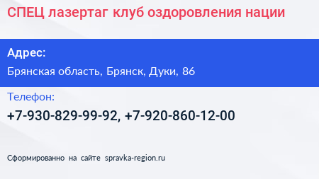 СПЕЦ, лазертаг-клуб оздоровления нации по адресу Брянская область, Брянск, Дуки, 86 в дальнейшем Организация, размещена в следующих категориях: