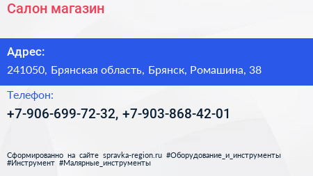 Салон-магазин по адресу 241050, Брянская область, Брянск, Ромашина, 38 в дальнейшем Организация, размещена в следующих категориях: