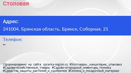 Столовая по адресу 241004, Брянская область, Брянск, Соборная, 21 в дальнейшем Организация, размещена в следующих категориях:
