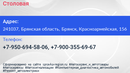 Столовая по адресу 241037, Брянская область, Брянск, Красноармейская, 156 в дальнейшем Организация, размещена в следующих категориях: