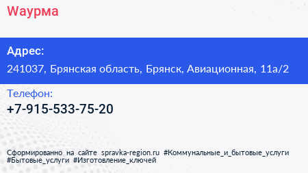 Wаурма по адресу 241037, Брянская область, Брянск, Авиационная, 11а/2 в дальнейшем Организация, размещена в следующих категориях: