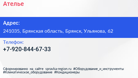 Ателье по адресу 241035, Брянская область, Брянск, Ульянова, 62 в дальнейшем Организация, размещена в следующих категориях: