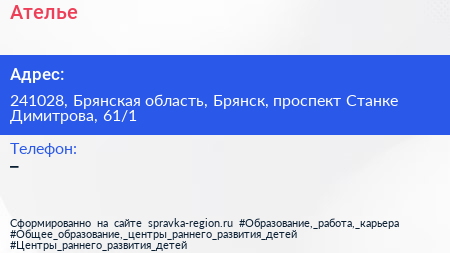 Ателье по адресу 241028, Брянская область, Брянск, проспект Станке Димитрова, 61/1 в дальнейшем Организация, размещена в следующих категориях: