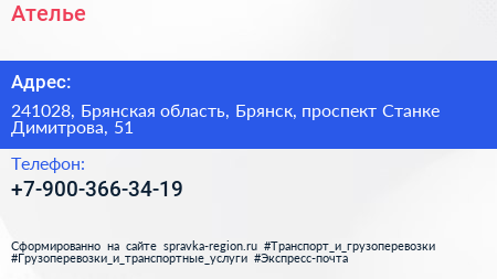 Ателье по адресу 241028, Брянская область, Брянск, проспект Станке Димитрова, 51 в дальнейшем Организация, размещена в следующих категориях: