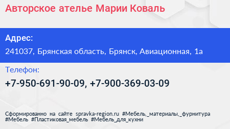 Авторское ателье Марии Коваль по адресу 241037, Брянская область, Брянск, Авиационная, 1а в дальнейшем Организация, размещена в следующих категориях: