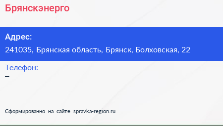 Брянскэнерго по адресу 241035, Брянская область, Брянск, Болховская, 22 в дальнейшем Организация, размещена в следующих категориях: