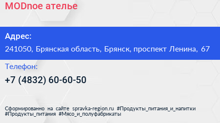 MODnoe, ателье по адресу 241050, Брянская область, Брянск, проспект Ленина, 67 в дальнейшем Организация, размещена в следующих категориях: