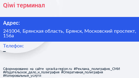 Qiwi, терминал по адресу 241004, Брянская область, Брянск, Московский проспект, 156а в дальнейшем Организация, размещена в следующих категориях: