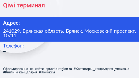 Qiwi, терминал по адресу 241029, Брянская область, Брянск, Московский проспект, 10/11 в дальнейшем Организация, размещена в следующих категориях: