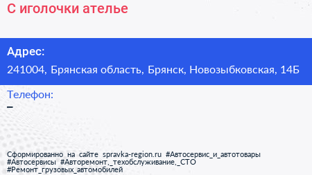 С иголочки, ателье по адресу 241004, Брянская область, Брянск, Новозыбковская, 14Б в дальнейшем Организация, размещена в следующих категориях: