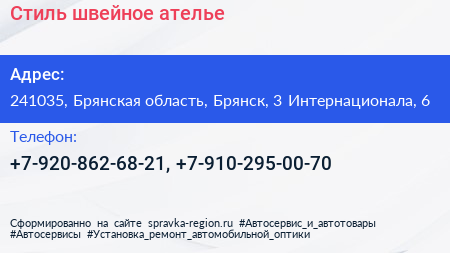 Стиль, швейное ателье по адресу 241035, Брянская область, Брянск, 3 Интернационала, 6 в дальнейшем Организация, размещена в следующих категориях: