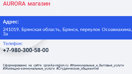 AURORA, магазин по адресу 241019, Брянская область, Брянск, переулок Осоавиахима, 3а в дальнейшем Организация, размещена в следующих категориях: