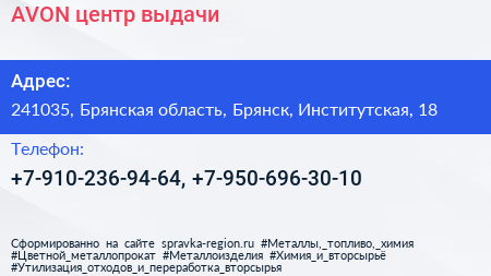 AVON, центр выдачи по адресу 241035, Брянская область, Брянск, Институтская, 18 в дальнейшем Организация, размещена в следующих категориях: