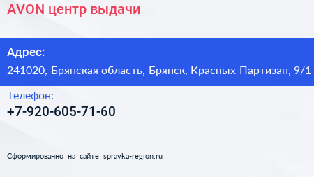 AVON, центр выдачи по адресу 241020, Брянская область, Брянск, Красных Партизан, 9/1 в дальнейшем Организация, размещена в следующих категориях: