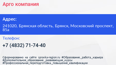 Арго, компания по адресу 241020, Брянская область, Брянск, Московский проспект, 85а в дальнейшем Организация, размещена в следующих категориях: