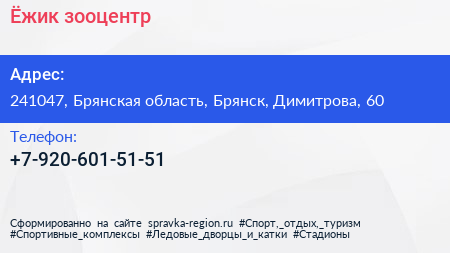 Ёжик, зооцентр по адресу 241047, Брянская область, Брянск, Димитрова, 60 в дальнейшем Организация, размещена в следующих категориях: