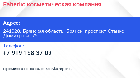 Faberlic, косметическая компания по адресу 241028, Брянская область, Брянск, проспект Станке Димитрова, 75 в дальнейшем Организация, размещена в следующих категориях: