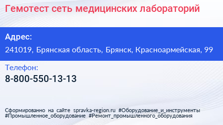Гемотест, сеть медицинских лабораторий по адресу 241019, Брянская область, Брянск, Красноармейская, 99 в дальнейшем Организация, размещена в следующих категориях: