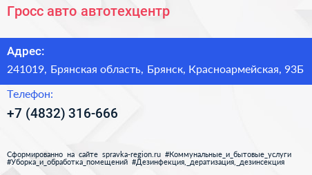 Гросс-авто, автотехцентр по адресу 241019, Брянская область, Брянск, Красноармейская, 93Б в дальнейшем Организация, размещена в следующих категориях: