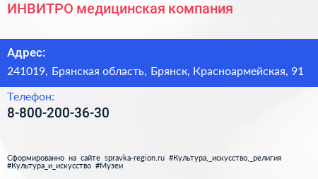 ИНВИТРО, медицинская компания по адресу 241019, Брянская область, Брянск, Красноармейская, 91 в дальнейшем Организация, размещена в следующих категориях: